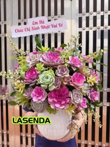 - Sen đá có thể đem đi trồng; Nếu bạn là một người yêu thích trồng cây, thì sau khi trưng có thể gỡ ra từng cây đem trồng để tạo thành một vườn sen đá cho riêng mình. Chúng mình đã có hướng dẫn chi tiết quy trình chăm sóc, bảo quản và trồng hoa sen đá kèm theo. Ngoài ra, nếu như bạn không đảm bảo được cách trồng và nhân giống thì có thể quay lại shop chúng mình, LASENDA sẽ giúp bạn chiết hoa từ lẵng và trồng theo yêu cầu mà bạn mong muốn.